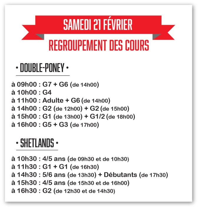 – Arrivez 30 minutes avant le début du cours pour brosser et seller le cheval.